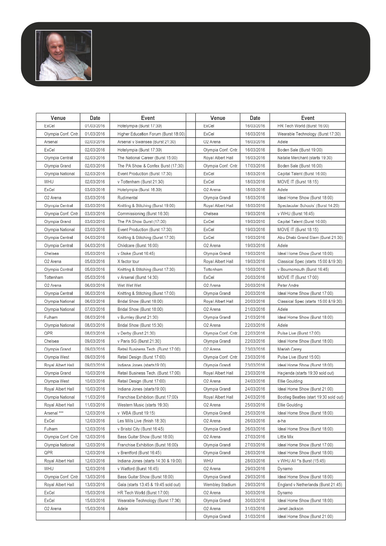 This month sees a ‘What’s On’ guide, 100 of them with burst times (where possible). *** If Arsenal go